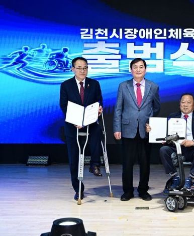 [ 신경북일보 ] 김천시장애인체육회가 2월 25일 김천시청 3층 강당에서 공식적으로 출범했다. 이날 행사에는 배낙호 회장과 장애인체육회 임원 등 300여 명이 참석해 출범을 축하했다. 출범식은 시립교향악단과 시립합창단의 공연으로 시작됐으며, 여상규 상임부회장이 출범을 선언하고 손태옥 사무국장이 그간의 경과를 보고했다. 이어 회기 릴레이 전달, 도장애인체육회 인준패 전달, 공로패 및 가맹단체 인준서 수여가 이어졌다. 배낙호 회장의 기념사, 안용우 도장애인체육회 상임부회장의 격려사, 나영민 의장, 박선하 도의원, 최한동 김천시체육회장의 축사와 함께 떡케이크 절단식도 진행됐다. 김천시는 지난해 12월 2일 장애인체육회 설립추진계획을 마련하고, 12월 11일 설립준비위원회를 구성했다. 이후 여러 차례 회의를 거쳐 규약과 제규정을 제정하고, 인력 채용과 사무실 인프라 구축 등 설립 절차를 진행했다. 배낙호 회장은 기념사에서 "이제 곧 김천에는 반다비체육관이 준공될 것이고 우리 장애인체육회도 공식 출범했으니, 장애인과 비장애인이 함께 어우러지는 건강한 체육문화를 조성하고 장애인체육의 발전을 한 단계 앞당기는 계기가 될 것"이라고 밝혔다.