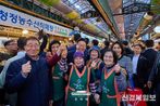 [ 신경북일보 ] 이재명 대통령과 김혜경 여사는 30일 오후 제주에서 진행된 타운홀미팅 '제주의 마음을 듣다'가 끝난 후, 1박 2일 제주 방문의 마지막 일정으로 제주시 중심가에 위치한 동문시장을 찾았다. 대통령 부부가 전통시장을 방문하자 상인들과 현장에 있던 시민, 관광객들은 환호와 박수로 반겼다. 이재명 대통령은 시장 입구에서 만난 외국인 관광객에게 출신지를 묻고, "오스트레일리아"라는 답을 듣기도 했다. 시장 내에서 이재명 대통령과 김혜경 여사는 셀카 촬영과 악수를 이어가며, 과일모찌 가게에서 온누리상품권으로 한라봉모찌와 딸기모찌를 구매해 강유정 대변인, 하정우 수석 등과 함께 즉석에서 시식했다. 이동 중에도 셀카 요청이 계속됐으며, 대통령 부부는 이에 응했다. 도민들은 "사랑해요", "와 대박", "화이팅" 등 다양한 응원의 말을 건넸다. 이재명 대통령은 특히 어린이들의 사진 요청에 적극적으로 응하며, "애기 있어요"라는 소리에 걸음을 멈추고 아이들과 하이파이브를 하거나 함께 사진을 찍었다. 강아지를 안고 있던 시민으로부터 강아지를 받아 사진을 찍는 장면도 있었다