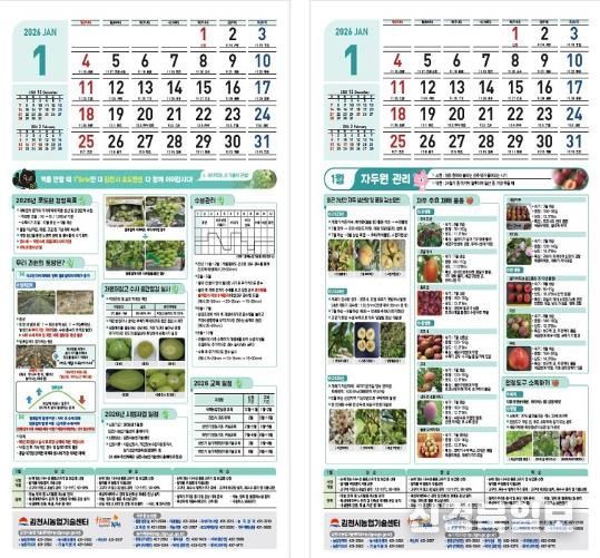 달력은 농업인이 영농 현장에서 시기별로 필요한 정보를 손쉽게 확인할 수 있도록 실용성과 가독성을 높인 벽걸이형으로 제작됐다.