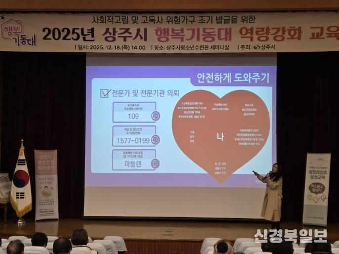 [ 신경북일보 ] 상주시는 12월 18일 상주시청소년수련관 세미나실에서 읍면동 행복기동대원 150여 명이 참석한 가운데 2025년 행복기동대 역량강화 교육을 실시했다.