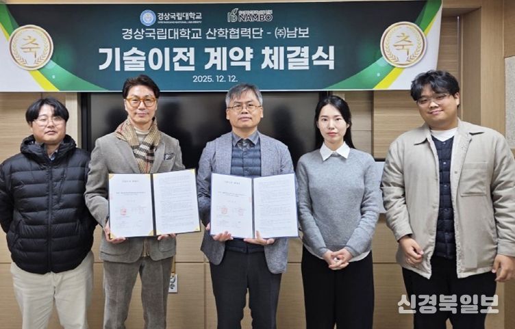 [ 신경북일보 ] 경상국립대학교 산학협력단(단장 최병근)은 12월 12일 주식회사 남보(대표 박순한)에 ‘살충제 탑재 기능성 바이오차 활용 농업용 비료 및 농자재 제조 방법’과 12월 10일 국가탄소은행(대표 류성기)에 ‘바이오차 활용 고성능 에어필터 제조 방법’ 관련 기술(연구책임자 서동철 농업생명과학대학 환경생명화학과 교수) 2건을 이전했다.