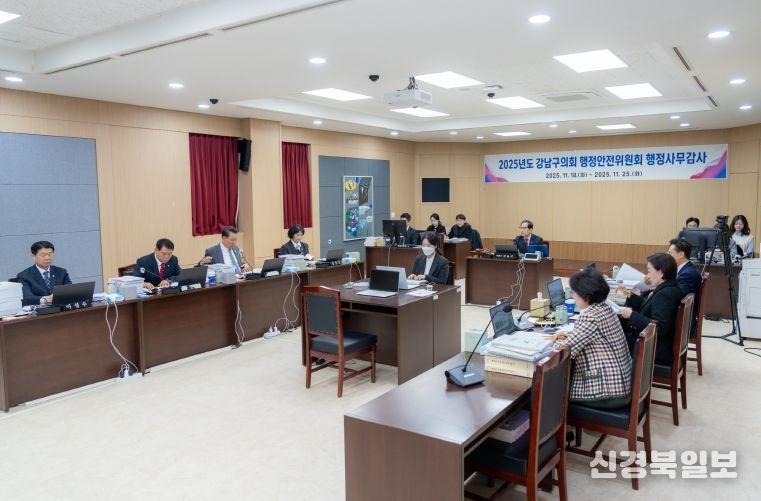 [ 신경북일보 ] 강남구의회 행정안전위원회는 제331회 제2차 정례회를 맞아 11월 18일부터 25일까지 총 8일간 중대재해예방실, 정책홍보실, 감사담당관, 행정국(동 주민센터 포함), 안전교통국 소관 부서에 대한 행정사무감사를 실시했다.