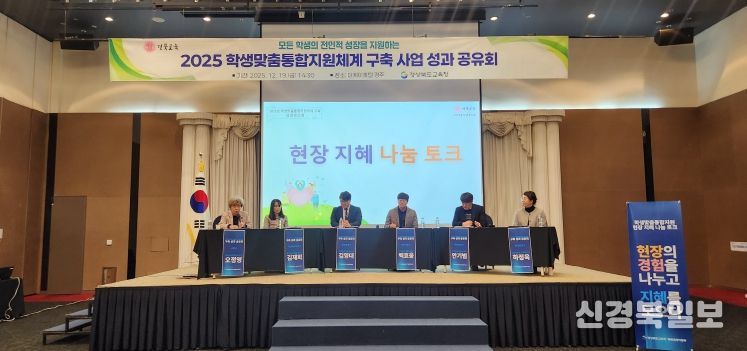 [ 신경북일보 ] 경북교육청은 19일 경주시에 있는 더케이호텔경주에서 학생맞춤통합지원 선도학교와 시범교육지원청, 지역교육지원청, 일반학교 관리자 등 100여 명이 참석한 가운데 ‘2025년 학생맞춤통합지원체계 구축 사업 성과 공유회’를 개최했다고 밝혔다.