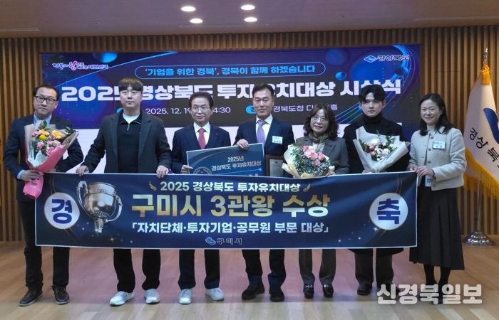 [ 신경북일보 ] 구미시는 지난 19일 경북도청 다목적홀에서 열린 '2025년 경상북도 투자유치 대상' 시상식에서 지자체 부문, 기업 부문, 유공 공무원 부문 모두에서 대상을 수상하며 ‘트리플크라운(3관왕)’을 달성했다. 경상북도 내 시·군의 투자유치 실적과 투자 활성화 노력 등을 종합 평가한 결과로, 구미시는 어려운 대외 여건 속에서도 2024년에 이어 2년 연속 최고 영예를 안았다.