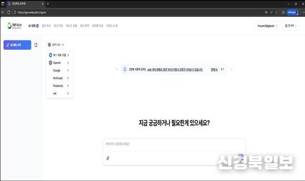 [ 신경북일보 ] 경북교육청은 12월부터 본청에 시범 도입․운영 중인 ‘가칭)경북형 웍스 AI’가 빠르게 정착됨에 따라, 2026년 1월부터 도내 교육지원청과 직속 기관, 학교까지 시범 운영을 확대한다고 22일 밝혔다.