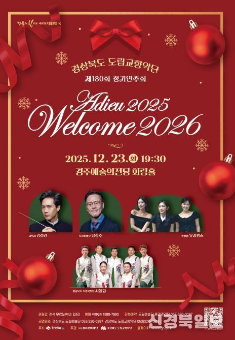 [ 신경북일보 ] 경상북도 도립교향악단이 23일 경주예술의전당 화랑홀에서 제180회 정기연주회 ‘아듀 2025! 웰컴 2026!’를 개최한다.