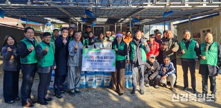 이날 전달된 물품은 목도리와 양말 10세트를 비롯해 쌀, 휴지, 간식 세트, 치킨 상품권, 신발 등 300만원 상당으로, 목도리와 양말은 직장·공장새마을운동경상북도협의회의 후원으로 마련됐다.