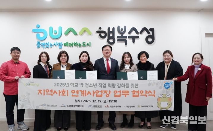 [ 신경북일보 ] 대구 수성구는 지난 19일 학교밖청소년의 직업 역량 강화를 위한 지역사회 연계사업 추진을 위해 관련 기관과 업무협약을 체결했다.