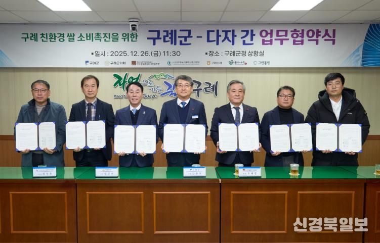[ 신경북일보 ] 구례군은 친환경 농업의 가치를 확산하고 쌀 소비 기반을 강화하기 위해 공공·금융·농협·민간이 참여하는 다자간 업무협약을 지난 12월 26일 군청 상황실에서 체결했다.