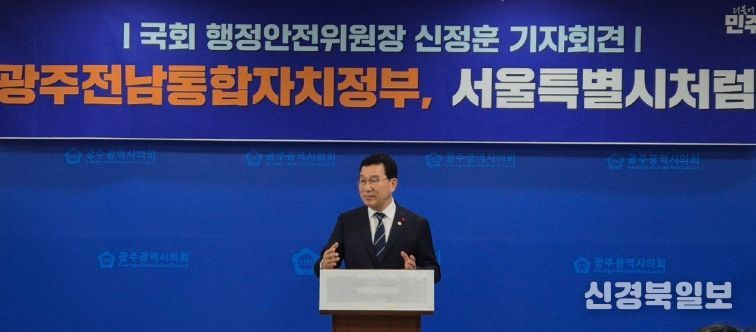 [ 신경북일보 ] 신정훈 국회 행정안전위원장은 오늘 광주광역시의회에서 기자회견을 열고 “광주·전남 대통합을 통해 분권형 국가로의 대전환을 이루고, 대한민국 재도약의 길을 열겠다”고 밝혔다.
