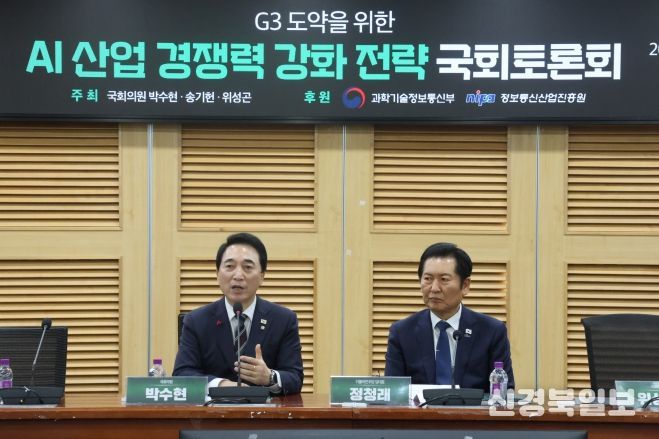 [ 신경북일보 ] 더불어민주당 박수현 의원(충남 공주·부여·청양)은 5일 국회의원회관에서 송기헌 의원(강원 원주을), 위성곤 의원(제주 서귀포시)과 함께 'G3 도약을 위한 AI 산업 경쟁력 강화 전략 국회토론회'를 열고, AI의 산업·공공·지역 확산을 위한 정책 과제를 논의했다.
