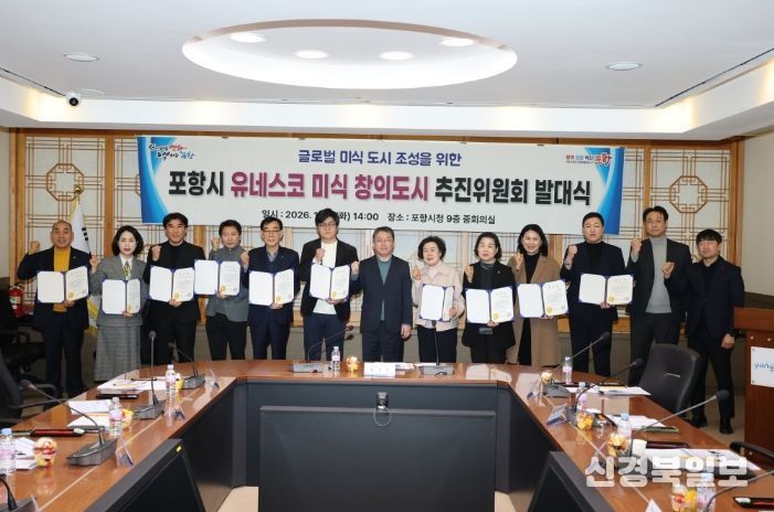 [ 신경북일보 ] 포항시는 27일 시청 중회의실에서 ‘포항시 유네스코 미식 창의도시 추진위원회’ 발대식을 개최하고, 유네스코 창의도시 네트워크(UCCN) 미식 분야 가입 추진을 위한 민·관·학 협력체계를 본격 가동했다.