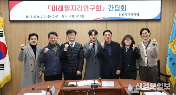 [ 신경북일보 ] 창원특례시의회 미래일자리연구회(대표의원 진형익)는 2일 창원시 미래일자리 연구활동을 위한 간담회를 열고, 올해 첫 의원연구단체 활동을 시작했다.