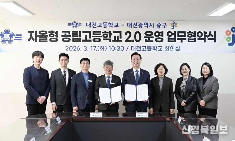 [ 신경북일보 ] 대전 중구는 17일 대전고등학교(교장 김기신)와 지역교육 기반 강화를 위한 상호교류 협력 협약을 체결하고, 지역과 학교가 유기적으로 소통하며 함께 성장하는 교육공동체 구축에 나섰다고 밝혔다.