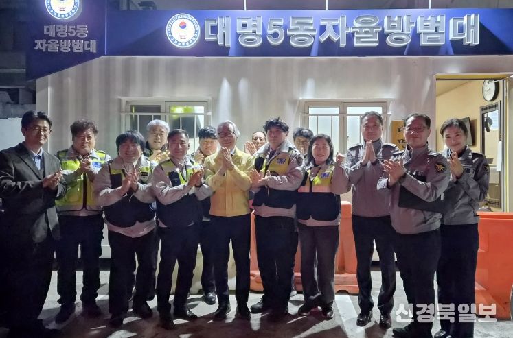 [ 신경북일보 ] 대구광역시 자치경찰위원회는 지역 치안의 중요한 축을 담당하고 있는 자율방범대의 노고를 격려하고 현장의 목소리를 듣기 위해 3월 31일 저녁, 남구 대명5동 자율방범대(대장 서영호)를 방문했다.