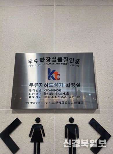 [ 신경북일보 ] 대구공공시설관리공단은 지난 1일 두류지하도상가 화장실이 행정안전부 주관 한국화장실문화협회로부터 ‘우수화장실 품질인증’을 획득했다고 밝혔다.