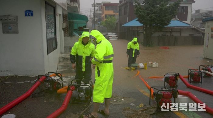 침수 지역에는 양수기를 가동해 배수 작업을 실시하고, 수해 쓰레기 등을 처리했다.