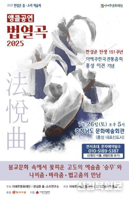 한편 '법열곡 2025'는 이애주문화재단이 주최하고 이애주한국전통춤회가 주관하며 동서식품이 후원하고 사랑의 열매가 지원한다.