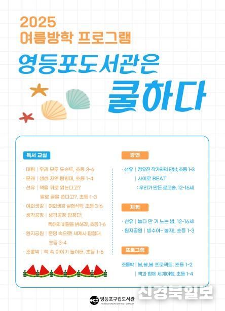 [ 신경북일보 ] 영등포구 산하 기관인 영등포문화재단이 여름방학을 맞아 어린이와 청소년을 위한 ‘영등포 도서관은 쿨하다’ 프로그램을 운영 중이라고 밝혔다.