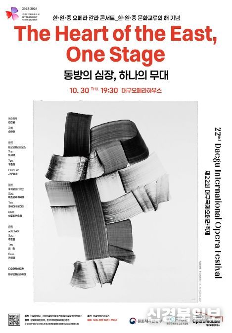[ 신경북일보 ] (재)대구문화예술진흥원 대구오페라하우스는 오는 10월 30일 오후 7시 30분, 제22회 대구국제오페라축제의 특별 공연으로 ‘2025 한·일·중 오페라 갈라 콘서트 – 동방의 심장, 하나의 무대’를 선보인다.