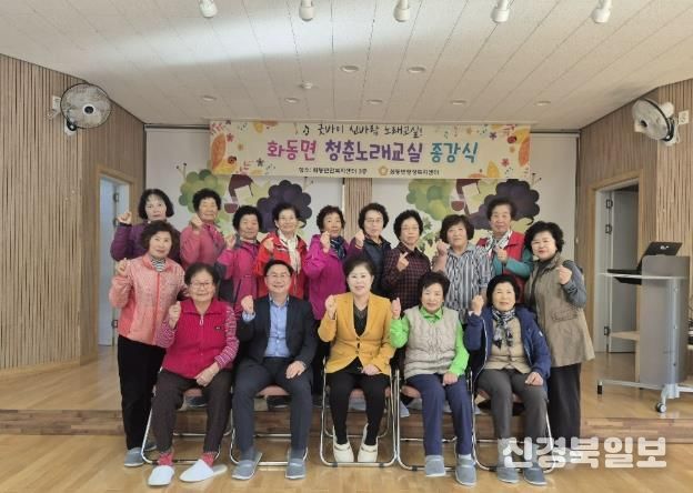[ 신경북일보 ] 상주시 화동면은 10월 28일 오후 2시 화동면민복지회관 3층 다목적실에서 수강생 및 강사 등 지역주민 20여 명이 참석한 가운데 「청춘노래교실」 종강식을 가졌다.