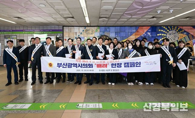 [ 신경북일보 ] 부산광역시의회는 10월 29일 오늘 오전 8시, 도시철도 사상역 역사 및 야외 열린공간에서‘부산광역시의회 공익캠페인 '배려〉’ 현장 캠페인과 함께‘찾아가는 현장소통’제2회 행사를 통합 개최했다.