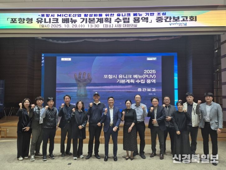 시는 29일 시청 대회의실에서 ‘포항형 유니크베뉴 기본계획 수립 용역’ 중간보고회를 열고 추진 현황과 향후 실행 방향을 논의했다.