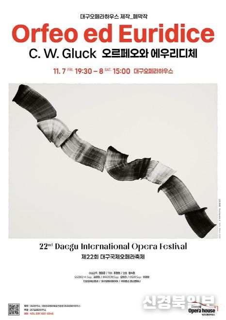 [ 신경북일보 ] 대구문화예술진흥원 대구오페라하우스는 제22회 대구국제오페라축제의 폐막작으로 글룩의 대표 오페라 ‘오르페오와 에우리디체’를 오는 11월 7일 오후 7시 30분, 11월 8일 오후 3시에 대구오페라하우스 대극장에서 선보인다.
