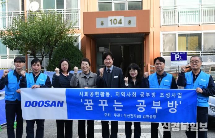 [ 신경북일보 ] 김천시 지역사회보장협의체와 ㈜두산전자 김천공장은 5일 지역 내 취약 가정 아동 2가구를 대상으로 ‘꿈꾸는 공부방’ 조성 사업을 진행했다고 밝혔다.