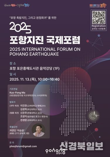 [ 신경북일보 ] 포항시는 오는 13일 오전 10시부터 포은흥해도서관 음악강당에서 ‘2025 포항지진 국제포럼’을 온오프라인 병행 개최한다.