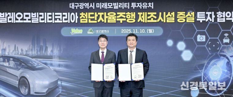 [ 신경북일보 ] 대구광역시는 11월 10일 시청 동인청사에서 발레오모빌리티코리아㈜(대표 김민규)와 첨단 자율주행 센서의 대량 양산체계 구축을 위한 공장 증설 투자협약을 체결했다.