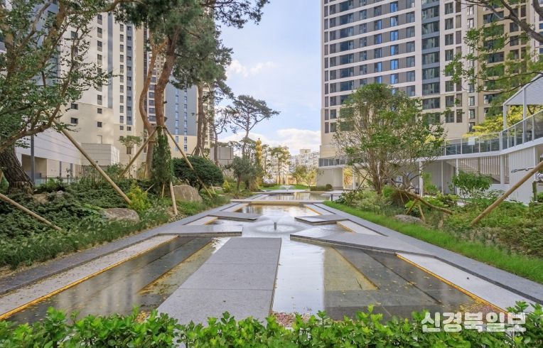 ‘두류역자이 아파트’ 조경은 ‘고요한 고급스러움(Serene Garden)’을 콘셉트로 숲과 정원, 수경 공간이 조화를 이루는 입체적인 경관을 구현한 점에서 높은 평가를 받았다.