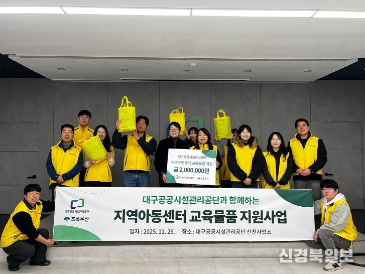 [ 신경북일보 ] 대구공공시설관리공단은 11월 25일 신천사업소에서 군위 지역아동센터 아동 30명에게 200만 원 상당의 교육물품 세트를 지원하는 봉사활동을 진행했다.