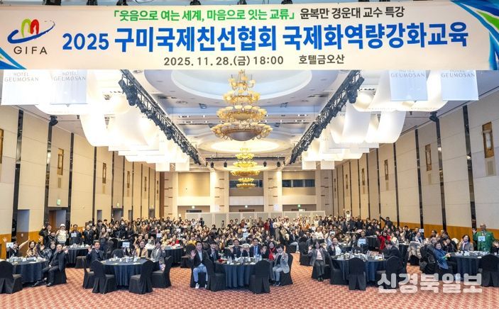 [ 신경북일보 ] 구미국제친선협회는 지난 28일 호텔금오산 컨벤션센터에서 회원 200여 명이 참석한 가운데 '2025 구미국제친선협회 국제화 역량 강화교육'을 개최했다. 이번 교육은 민간 외교관으로서 필요한 글로벌 소통 역량을 높이고, 해외 방문객을 맞이하는 지역의 역할을 강화하기 위해 마련됐다.