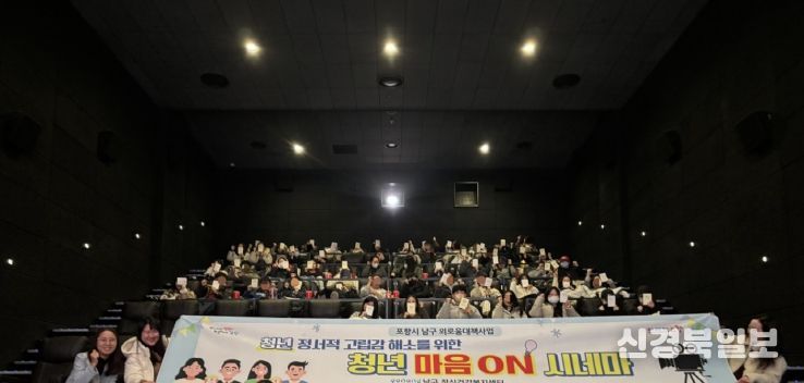 [ 신경북일보 ] 포항시 남구정신건강복지센터는 지난 4일 포항 메가박스에서 지역 청년 대상 단체 영화관함 행사인 ‘청년 마음 ON 시네마’를 운영했다.