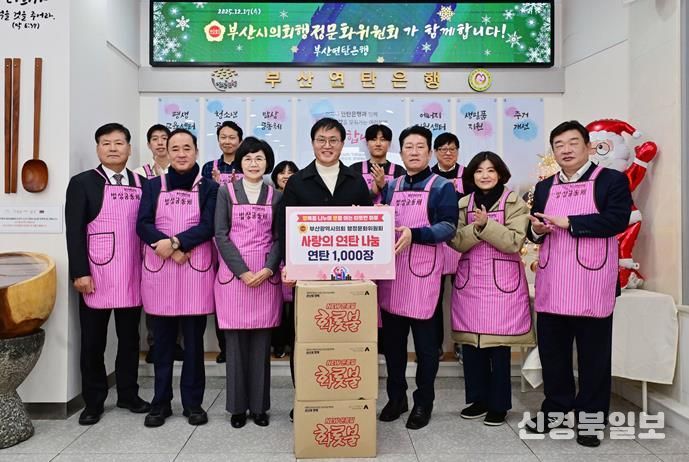 [ 신경북일보 ] 부산광역시의회 행정문화위원회는 12월 17일 오전 10시 부산연탄은행에서 동절기 난방 취약계층과 지역 소외계층의 따뜻한 겨울나기를 돕기 위해 연탄 기부금 전달 및 배식 봉사활동을 실시했다.