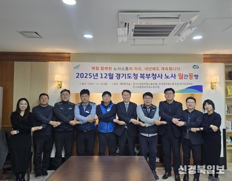 [ 신경북일보 ] 경기도 북부청과 경기도청 3개 노동조합(경기도청공무원노동조합, 전국공무원노동조합 경기도청지부, 경기도통합공무원노동조합)은 ‘노사월동(노사 월간동행)’을 매월 정기적으로 운영해 오며 실질적인 조직문화 개선과 노사 간 신뢰 회복 기틀을 마련했다고 22일 밝혔다.