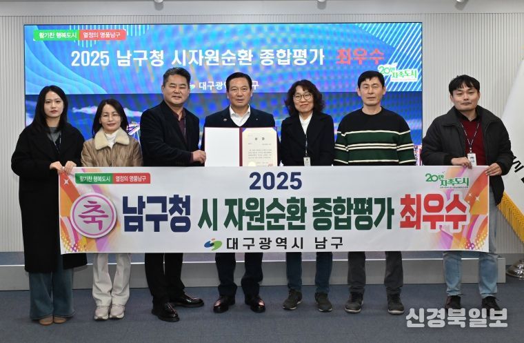 [ 신경북일보 ] 대구 남구는 2025 대구시 자원순환행정 종합평가에서 9개 구·군 가운데 ‘최우수’(1위)를 차지하며, 자원순환 선도 도시 명품 남구의 위엄을 알렸다.