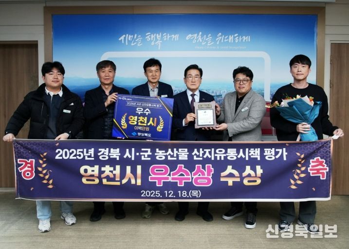 [ 신경북일보 ] 영천시는 지난 18일 경주에서 열린 농산물 산지유통 총괄평가회에서 ‘2025년 경상북도 시·군 농산물 산지유통시책 평가’ 우수상을 수상했다고 밝혔다.