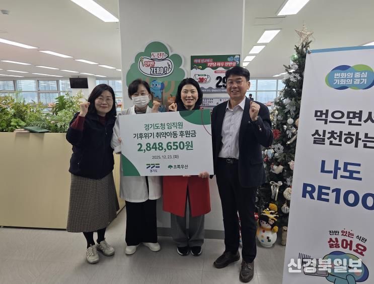 서기천 경기도 총무과장은 “잔반을 줄이는 일상 속 실천이 탄소 감축을 넘어 기후 취약계층 지원으로 이어졌다는 점에서 의미가 크다”면서 “앞으로도 환경 보호와 나눔을 함께 실천하는 조직 문화를 확산해 나가겠다”고 말했다.