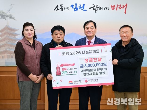 [ 신경북일보 ] 대한곡물협회 김천시지부(지부장 윤진채)에서는 26일 김천시청을 방문해 ‘희망2026 나눔캠페인’ 성금 300만 원을 기부했다.