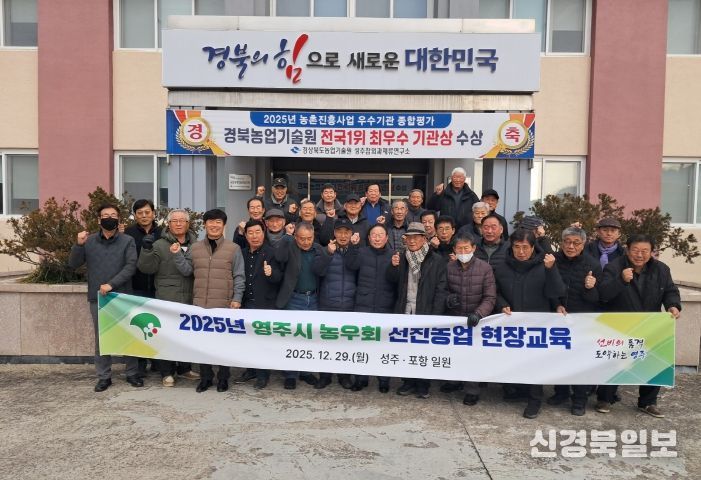 [ 신경북일보 ] 영주시농우회(회장 서석현)는 지난 29일, 회원 38명이 참여한 가운데 성주, 포항 일원에서 열린 '2025년 영주시농우회 선진농업 연찬교육'을 성공적으로 마무리했다.