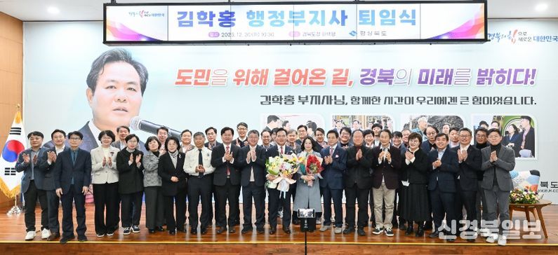 [ 신경북일보 ] 김학홍 경상북도 행정부지사가 30일 도청에서 퇴임식을 갖고, 3년 2개월간의 행정부지사 임기를 끝으로 33년간의 공직 생활을 마무리했다.
