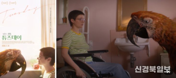 먼저 삶과 죽음에 관한 독특한 시선을 담은 영화 '튜즈데이'는 불치병에 걸린 ‘튜즈데이’와 점점 다가오는 딸의 죽음을 거부하는 엄마 ‘조라’ 앞에 모든 죽어가는 존재의 마지막 순간을 배웅하는 앵무새 ‘죽음’이 나타나며 벌어지는 A24 X BBC FILM의 독특한 휴먼 감동 판타지이다.