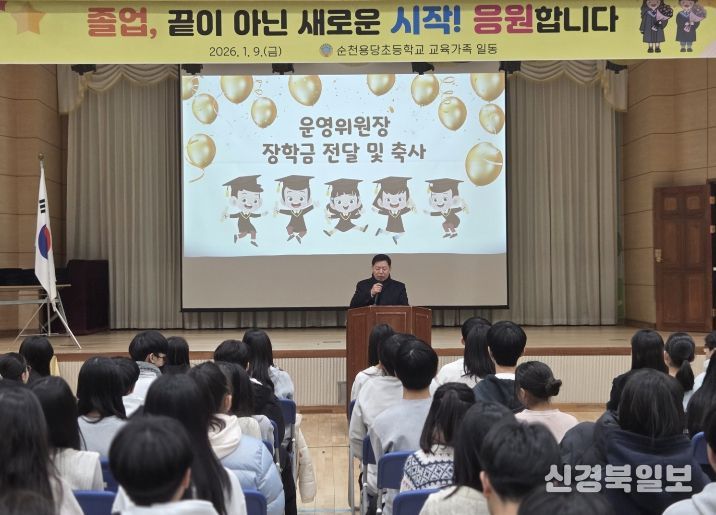 김 위원장은 이날 축사를 통해 “졸업생 여러분은 순천용당초등학교에서 배움의 기쁨과 친구의 소중함, 그리고 서로를 존중하고 배려하는 마음을 배웠다”라며 “이 경험은 앞으로 어떤 길을 가든 여러분을 바르게 이끌어 줄 평생의 자산이 될 것”이라고 말했다.
