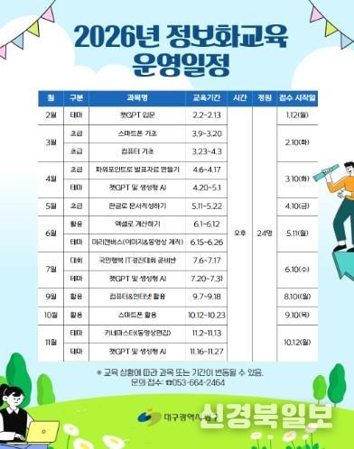 [ 신경북일보 ] 대구 남구는 구민을 대상으로 2026년 정보화교육을 실시한다고 밝혔다.