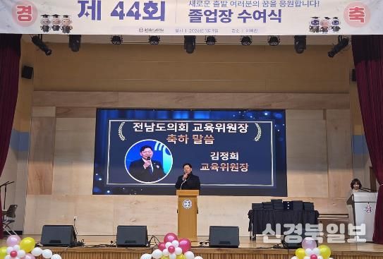 [ 신경북일보 ] 김정희 전남도의회 교육위원장은 1월 9일, 순천효산고등학교에서 열린 제44회 졸업식에 참석해 졸업생들을 격려하며 따뜻한 축사를 전했다.
