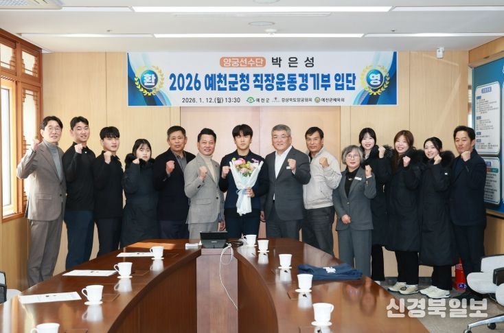 [ 신경북일보 ] 예천군은 2026년 예천군청 양궁선수단의 새로운 식구로 박은성 선수가 합류하며, 12일 예천군청 군수실에서 입단식을 개최했다고 밝혔다.