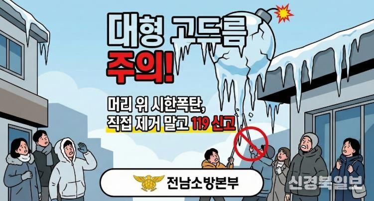 [ 신경북일보 ] 전남소방본부는 12일, 최근 기온 급강하와 상승이 반복되면서 도심 건물과 주택 처마 등에 생긴 대형 고드름으로 인한 안전사고 주의를 당부했다.