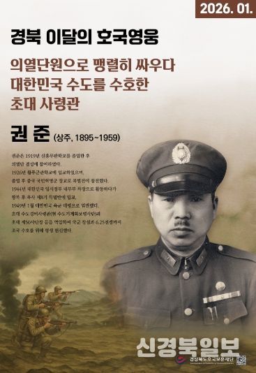 [ 신경북일보 ] 경상북도호국보훈재단은 2026년‘경북 이달의 호국영웅’ 사업의 첫 주인공으로 독립운동가이자 대한민국 국방의 초석을 다진 상주 출신 권준(權晙, 1895~1959) 장군을 선정했다고 밝혔다.